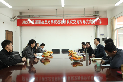 天津市团市委及兄弟院校领导与我院团委书记叶振楠及副书记在会议室进行交流