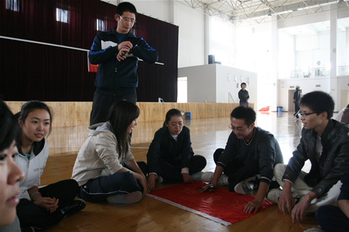 为进一步增进我院教师的团体凝聚力,促进教师之间的沟通和交流,增强教师对学院的归属感,10月23日,我院2009级新入职教师在体育馆开展了一场别开生面的心理拓展训练。本次心理拓展训练由学院办公室主办,学生处心理咨询中心、体育部协办。