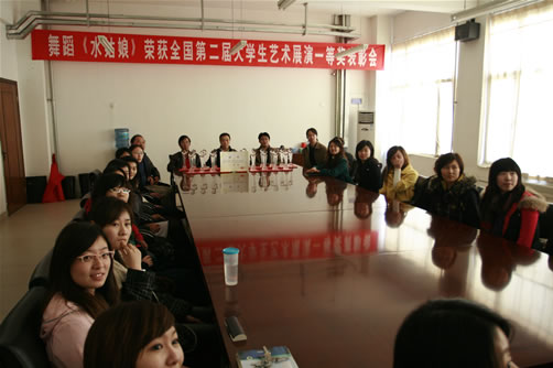 3月17日下午,我院舞蹈《水姑娘》荣获全国第二届大学生艺术展演一等奖表彰会在行政楼三层会议室召开。北京科技大学党委副书记张文明、天津学院院长郭景文、党委书记王斌、副院长曹连东、财务总监肖祖刚、学生处处长盛佳伟、团委书记叶振楠、艺术教育中心主任李坤出席了表彰会。《水姑娘》参赛同学参加了表彰会。