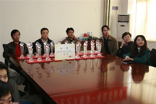 学院领导分别给获奖人员颁发获奖证书和奖杯,并与参赛同学合影留念。