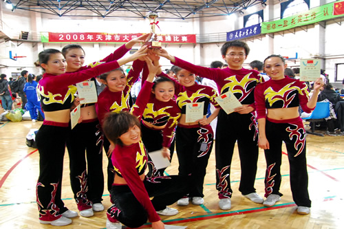 11月29日,我院健美操代表队赴天津工业大学参加了天津市2008年大学生健美操比赛,本次比赛由天津市教委主办,我院健美操代表队技压群雄,取得独立学院组第一名的好成绩。