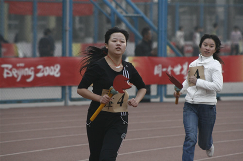 比赛开始后,我院迟铁老师领跑第一棒50米,之后4名女运动员各跑一圈,6名男运动员每人跑两圈完成剩余的比赛。比赛场面十分激烈,整个赛场热烈的气氛与校园寒冷的冬天形成了鲜明的对比,充分展示了运动员良好的精神面貌及团队协作精神。