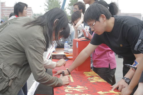 5月14日、15日两天,学院红十字协会组织“众志成城,抗震救灾,尽我薄力,情系灾民”捐款签名活动。活动一经开展,立即吸引了大量同学的注意力,同学们纷纷慷慨解囊,五元、十元、五十元、一百元,有的同学掏空了自己的钱包,把包中所有的钞票都塞进了募捐箱,有的同学把以前攒的一大口袋硬币都倒进了募捐箱,还有的同学干脆掏出几张百元大钞塞了进去。捐完款的同学在写有“众志成城,抗震救灾,尽我薄力,情系灾民”的横幅上签下了自己的名字。