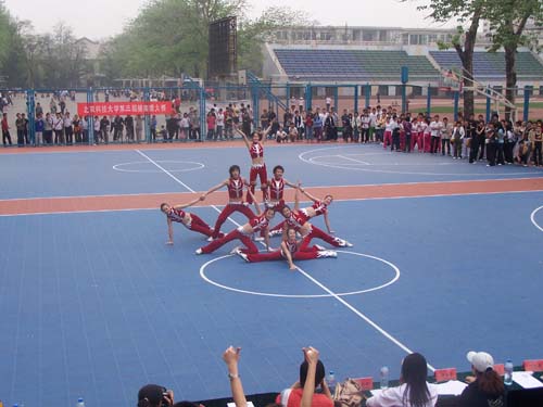 在本次大赛中我院健美操队表现突出,不仅展示了同学们积极健康的精神风貌以及良好的团队配合精神,更突出了我院学子为迎接奥运、为奥运喝彩的风采。