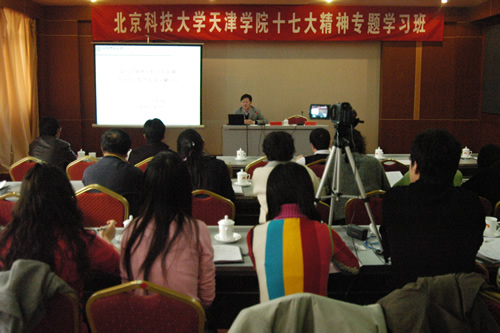 北京科技大学校长助理、天津学院院长张文明教授、常务副院长郭景文教授、党委书记、副院长王斌教授、副院长曹连东、学院处级以上领导及学生事务部全体辅导员参加了学习。