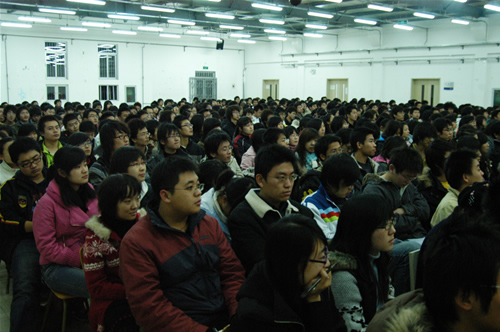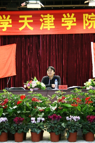 开学典礼结束后,北京科技大学天津学院第一期团校第一讲正式开始。此次讲座邀请了北京科技大学文法学院副院长左鹏教授为参加团校的学生干部进行了学习十七大报告的辅导。左鹏教授重点对以下六个方面进行了十七大的辅导:改革开放的伟大历史进程、深入贯彻落实科学发展观、实现全面建设小康社会奋斗目标的新要求、推动社会主义文化大发展大繁荣、祖国和平统一和党的建设。左教授旁征博引、引经据典的讲座方式让现场不时响起热烈的掌声。现场互动环节中,在场学生针对教育、医疗和住房等方面踊跃发言,左鹏教授给与了详细的解答。讲座在一片和谐的气氛中结束。