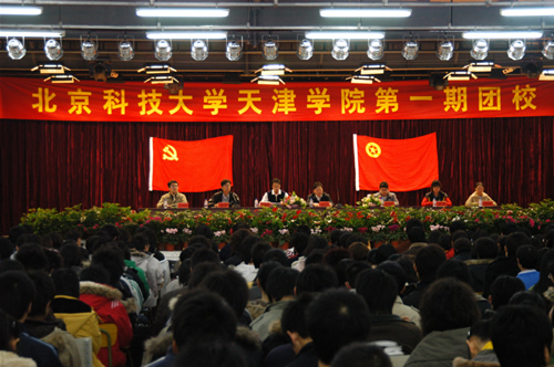 晚6点,团校开学典礼在庄严的国歌声中拉开帷幕。团委副书记岳强介绍了北京科技大学天津学院第一期团校培训计划及培训要求。此次团校成员通过自主学习和集中学习两个方面进行学习。自主学习的内容包括十七大报告、党章和团章;集中学习的内容包括针对热点问题的讲座、班级活动和素质拓展活动。