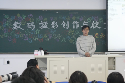 12月8日上午,在我院8教106室举行摄影技术讲座活动,本次讲座活动由宝坻区委宣传部、宝坻区摄影家协会及我院宣传部共同主办,天津《城市快报》、《车天下》杂志的摄影部主任、宝坻区委宣传部领导、宝坻区摄影家协会会员与我院摄影爱好者就摄影技巧等问题进行了亲切交流。