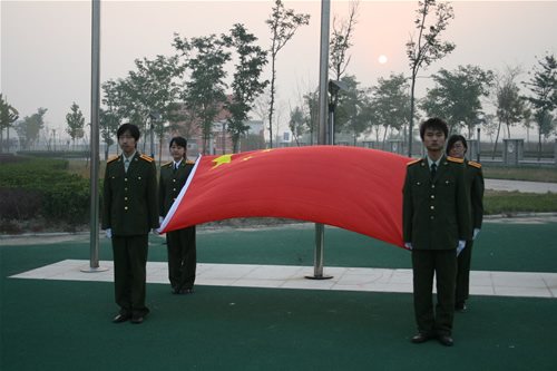 10月22日早晨,我院在学院操场举行“喜贺十七大,建设新校园”升国旗仪式,近三千名学生参加了升旗仪式。