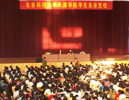 4月25日下午,第二期学生业余党校在体育馆内举行最后一讲,主讲人为北京科技大学文法学院副院长、清华大学博士左鹏教授。