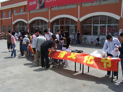 中午12:00,迎着下课的人流,广播文化节拉开了帷幕。广播站成员向同学们散发了广播文化节的宣传手册,并热情邀请同学们填写对广播站的意见和建议。