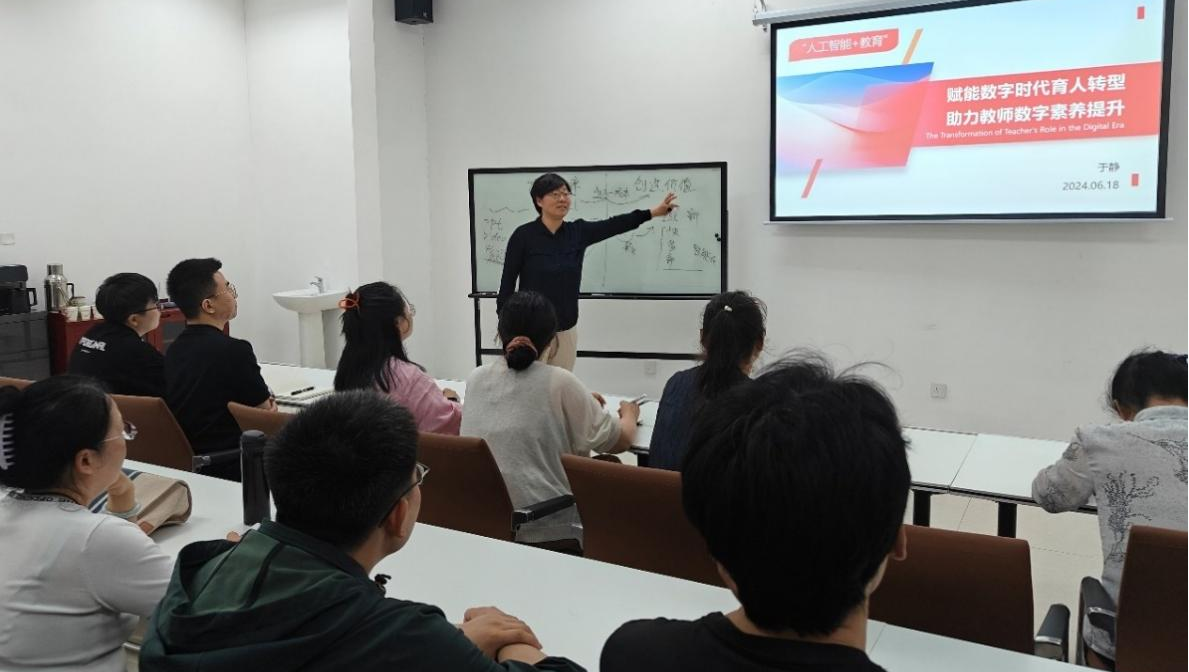 本期讲座特邀北京科技大学天津学院信息工程学院副院长于静教授担任主讲。于教授首先从“数字时代的定义”入手,通过具体而生动实例直观阐释了该概念,成功引发在场教师的浓厚兴趣。继而,她从人工智能技术的最新进展出发,深入分析了在快速发展的数字化、信息化背景下,传统教育模式的局限性。她强调,人工智能技术的引入不仅能够推动教育理念和教学模式的革新,更为个性化和智能化教学提供了强有力的支持。