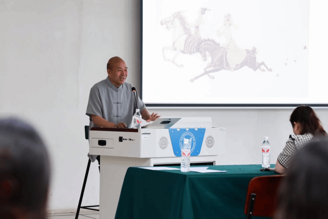 王俊敏院长在致辞中首先对各位专家的到来表示欢迎,学院一直致力于推动学生的全面发展,特别是在艺术教育和文化传承方面,一直积极寻求合作,愿与各方一道共同推动书画艺术的研究、创作和推广,为优秀传统文化的传承和发展贡献力量,也为我们学院的艺术教育和文化传承工作注入新的活力。